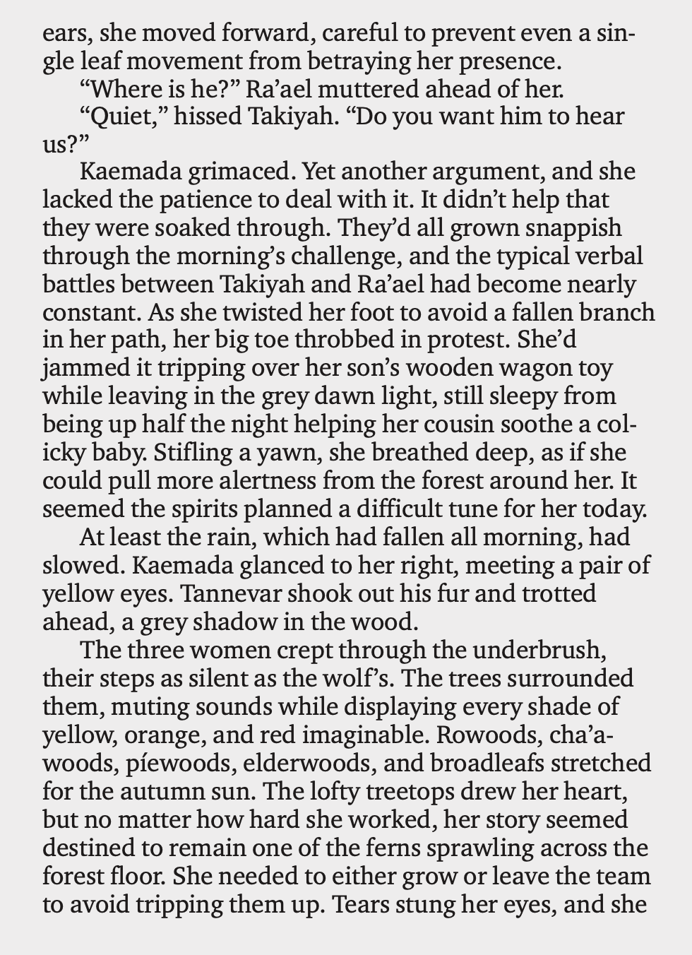 When her son goes missing in the perilous mountains, Kaemada defies the law to search for him. She enlists the help of her hero brother, a priestess berserker, and a fire-wielding friend.